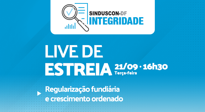 Está chegando o dia da live de estreia do projeto Integridade Sinduscon-DF, que terá como tema: “Regularização fundiária e crescimento ordenado”.