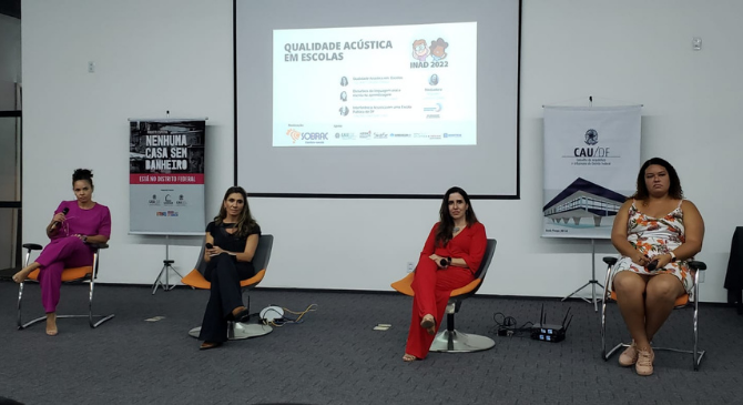 “O objetivo deste evento é trazer atividades que tratem não somente da questão da escola, mas também da importância da arquitetura escolar. Hoje marcará o início de uma ação que iremos realizar nos próximos meses em busca da conscientização sobre acústica nas escolas,” explicou a arquiteta e coordenadora da Sobrac-CO, Ludmila Correia, durante abertura do seminário.