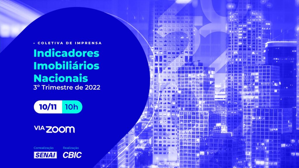 A Câmara Brasileira da Indústria da Construção (CBIC) realizará, no dia 10 de novembro (quinta-feira), às 10h, a coletiva de imprensa online, sobre o balanço do Mercado Imobiliário Nacional no terceiro trimestre de 2022.