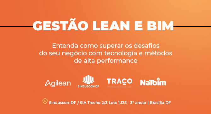 O Sinduscon-DF e a Aval Engenharia realizarão o workshop “Gestão Lean e BIM – Entenda como superar os desafios do seu negócio com tecnologia e métodos de alta performance”, no dia 7 de julho, quinta-feira, às 16h, no auditório do Sinduscon-DF. O evento conta com o apoio das empresas Traço e NatBim.