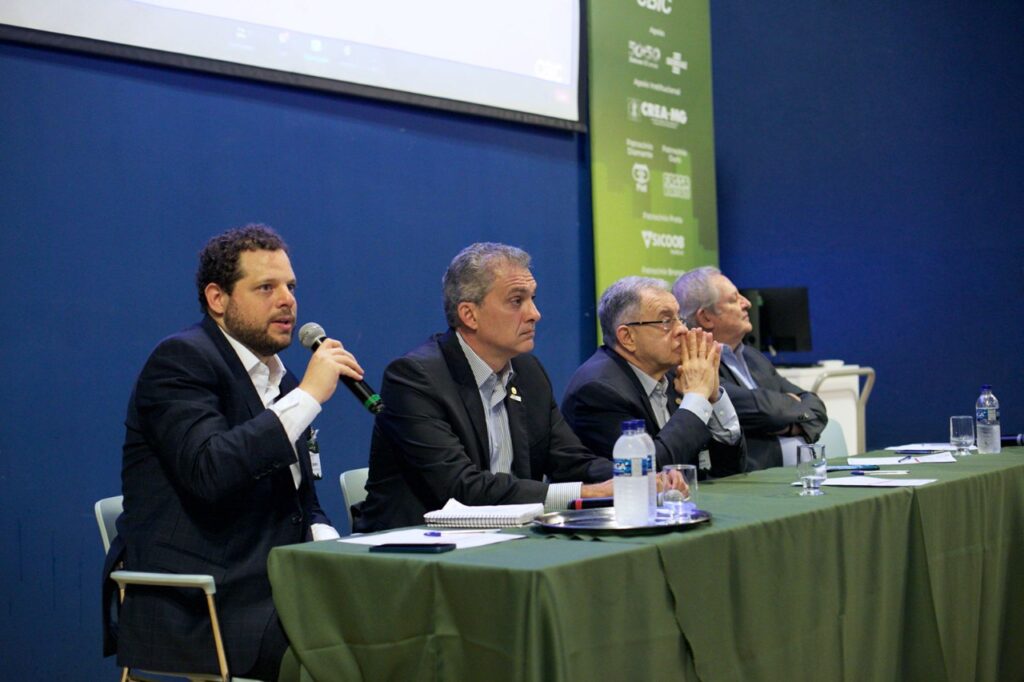 Da esquerda para a direita: Danilo Fariello (Comunicação da CBIC), Eduardo Aroeira (vice-presidente Administrativo da CBIC), José Carlos Martins (presidente da CBIC) e Elson Póvoa (vice-presidente Financeiro da CBIC). Crédito da foto: @reldbenfica