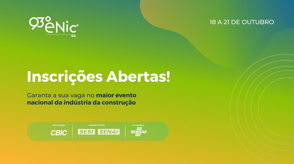 O 93º Enic é uma realização da Câmara Brasileira da Indústria da Construção (CBIC) e conta com apoio do Serviço Social da Indústria (Sesi Nacional), do Serviço Nacional de Aprendizagem Industrial (Senai Nacional) e de entidades do setor, com patrocínio do Sebrae, OrçaFascio, Konstroi, Agilean, Brain Inteligência Estratégica, Mútua e Predialize.