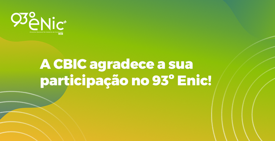 Realizado pela Câmara Brasileira da Indústria da Construção (CBIC), o 93º Enic contou com apoio do Serviço Social da Indústria (Sesi Nacional), do Serviço Nacional de Aprendizagem Industrial (Senai Nacional) e de entidades do setor, com patrocínio do Sebrae, OrçaFascio, Konstroi, Agilean, Brain Inteligência Estratégica, Mútua e Predialize.