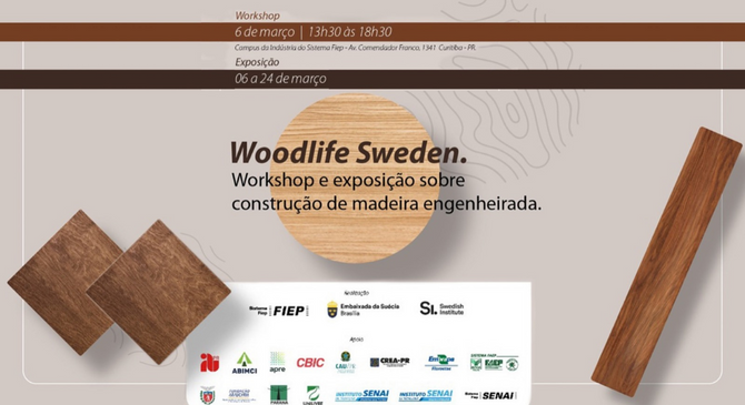 Com apoio da Câmara Brasileira da Indústria da Construção (CBIC), a Federação das Indústrias do Paraná (Fiep), a Embaixada da Suécia em Brasília e o Swedish Institute lançarão, no próximo dia 6 de março, a exposição Woodlife Sweden. Serão 40 projetos, com destaque para uso de madeira engenheirada, com um forte apelo de sustentabilidade, já que é uma matéria-prima renovável e de produção baseada em florestas plantadas e certificadas, em convergência com os 17 Objetivos de Desenvolvimento Sustentável da ONU (ODS).