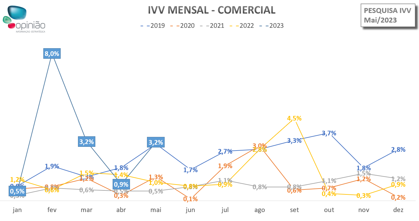 “Interessante que, em 2023, houve um avanço importante no IVV de imóveis comerciais (vide gráfico abaixo), que veio bem abaixo do residencial ao longo dos últimos anos, o que mostra que o crescimento do DF também está gerando demanda de imóveis comerciais novos”, finaliza o vice-presidente do Sinduscon-DF, João Carlos Lopes.