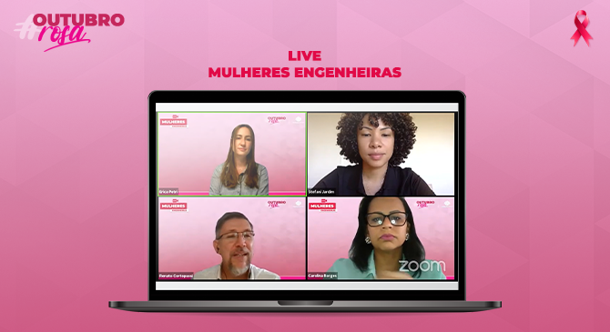 Dentro das ações do Outubro Rosa, na última quarta-feira (27), o Sinduscon-DF transmitiu a live “Mulheres Engenheiras”. O evento contou com a participação de engenheiras de empresas associadas Erica Petri, da Brasal; Stefani Jardim, da Emplavi e Carolina Borges, da Kali Engenharia. A conversa trouxe relatos da trajetória de cada uma delas até chegarem à Engenharia Civil. A mediação foi de Renato Cortopassi, diretor de materiais, tecnologia e produtividade do Sinduscon-DF.