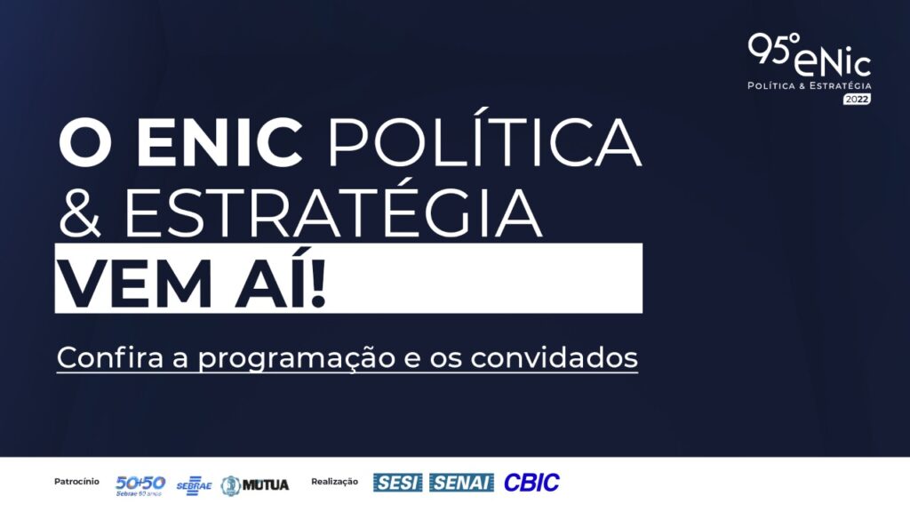 O ENIC está chegando! No próximo dia 7 de dezembro, a Câmara Brasileira da Indústria da Construção (CBIC) realiza, em Brasília, a 95ª edição do ENIC | Política & Estratégia – O Futuro da Construção: Competitividade e Sustentabilidade. O evento tem o intuito de debater a agenda do setor com o poder público e apresentar propostas e sugestões aos poderes Executivo e Legislativo para elevar a geração de emprego e renda no país. O encontro acontecerá no Centro de Eventos Brasil 21, em Brasília.