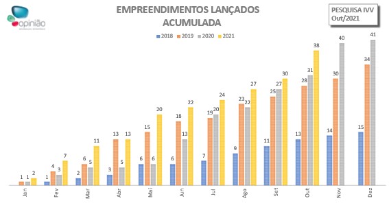 “Outubro foi mais um mês com boa velocidade de vendas. Os resultados positivos devem persistir em novembro e dezembro, de forma que 2021 está se consolidando como um ano de muitas vendas e lançamentos no mercado imobiliário”, acrescenta Adalberto Valadão Júnior, vice-presidente do Sindicato da Indústria da Construção Civil do Distrito Federal (SINDUSCON-DF).