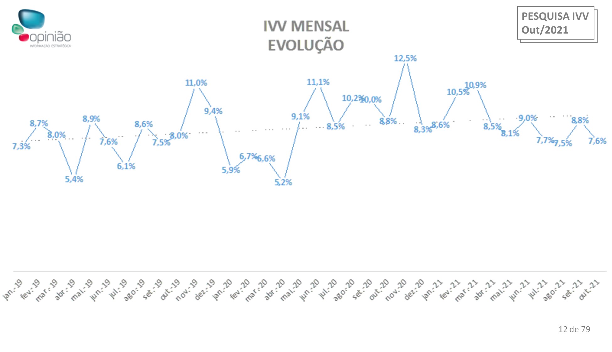 Mercado aquecido – O IVV acompanha o desempenho do mercado imobiliário do Distrito Federal. Iniciativa conjunta da ADEMI DF com o SINDUSCON-DF, com apoio do SEBRAE-DF, a pesquisa é realizada pela Opinião Informação Estratégica. A coleta de dados é mensal, junto às construtoras e incorporadoras mais representativas do mercado. Quanto mais alto o índice, menor o tempo necessário para vender as unidades dos empreendimentos.