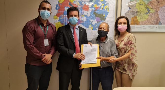 Com os olhos – que já não enxergam mais – marejados, Napoleão de Souza Filho assinou o contrato de Concessão de Direito Real de Uso (CDRU) da empresa Mercantil Materiais de Construção Ltda, localizada na M Norte, após 27 anos de espera. O empresário, com a sabedoria que seus 74 anos lhe confere, embora sem a visão, tem total consciência do documento que segura em mãos, este, entregue pelo diretor de Regularização Social e Desenvolvimento Econômico da Terracap, Leonardo Mundim. Finalmente, ele conseguiu a migração da empresa do antigo Prodecon para o Pró-DF II, regularizando seu terreno. Em breve, após cumprir com os requisitos do Programa e emitir o Atestado de Implantação Definitivo (AID) conseguirá, enfim, a tão sonhada escritura definitiva do imóvel. A loja prossegue funcionando e jamais mudou a razão social, tamanha fé nesta possibilidade.