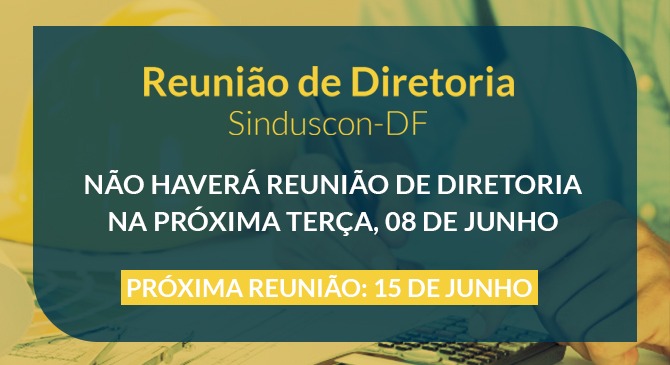 Informamos que não haverá Reunião de Diretoria nesta terça-feira (8).