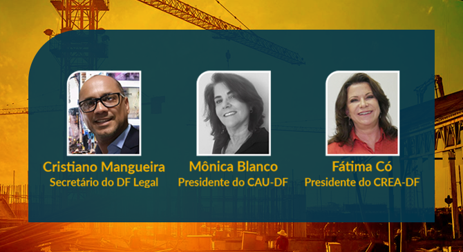 Na próxima terça-feira (17), o secretário do DF Legal, Cristiano Mangueira, presidente do CAU-DF, Mônica Blanco e presidente do Crea-DF, Fátima Có estarão presentes na Reunião Ordinária de Diretoria do Sinduscon-DF.