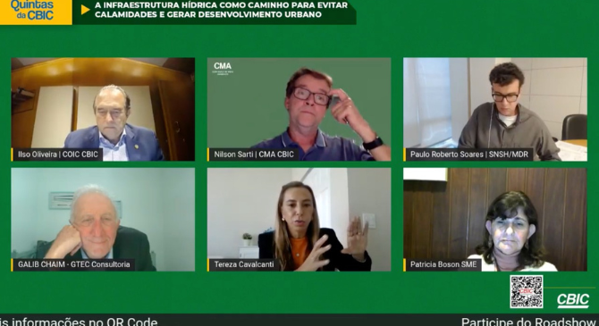 A preocupação com a estrutura de drenagem urbana no Brasil, foi tema do debate nesta quinta-feira (21), na live “Quintas da CBIC – A infraestrutura hídrica como caminho para evitar calamidades e gerar desenvolvimento urbano”, promovida pela Câmara Brasileira da Indústria da Construção (CBIC), em parceria com a Comissão de Obras Industriais e Corporativas (COIC/CBIC); Comissão de Infraestrutura (COINFRA); e com a Comissão do Meio Ambiente (CMA/CBIC).