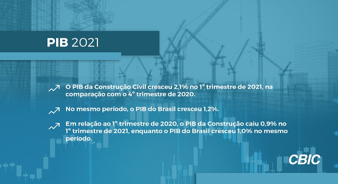 Já o PIB da construção civil, que é um setor estratégico para o desenvolvimento sustentado do País, cresceu 2,1% no 1º trimestre de 2021 em relação ao 4º trimestre de 2020, superando a alta do PIB nacional e mostrando, mais uma vez, a força do setor na economia nacional. Em 2020, mesmo considerando as dificuldades impostas pela chegada da pandemia, a construção foi o setor que mais gerou novos postos de trabalho com carteira assinada no País (105.248 novas vagas).