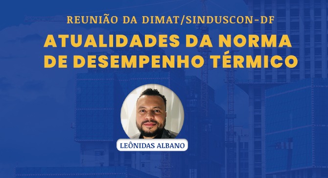 A Diretoria de Materiais, Tecnologia e Produtividade (Dimat/Sinduscon-DF) vai realizar sua próxima reunião mensal no dia 26 de agosto, sexta-feira, das 8h às 10h. O evento será em formato híbrido, presencial, na sala de reuniões Luiz Carlos Botelho Ferreira e online, pela plataforma Zoom.