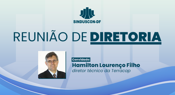 Na próxima terça-feira (05), às 10h, a reunião de diretoria contará com a presença de Hamilton Lourenço Filho, diretor técnico da Terracap. A reunião será em formato híbrido, presencial na sala Luiz Carlos Botelho Ferreira e online via Zoom.