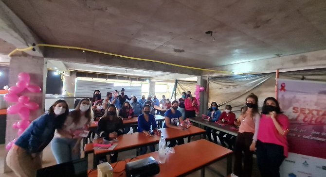 A ação do #SextaRosa de hoje, uma iniciativa conjunta do Sinduscon-DF e da Secretaria da Mulher do DF, com apoio do Seconci-DF e Sticombe foi realizada no canteiro da associada Apex Engenharia, localizada em Samambaia Sul. A palestra de conscientização sobre o câncer de mama contou com a presença das trabalhadoras do canteiro.