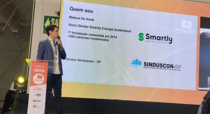 Mateus foi um dos palestrantes no painel do primeiro dia com o tema: “GD com fontes renováveis”. O foco foi apresentar o número de conexões e potencial instalado no Distrito Federal.