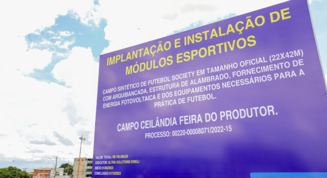 O governador Ibaneis Rocha assinou, ainda, a ordem de serviço para a construção de uma quadra de futebol na região da Feira do Produtor, em Ceilândia. Além do campo de futebol society, a Feira do Produtor terá estacionamento ampliado.