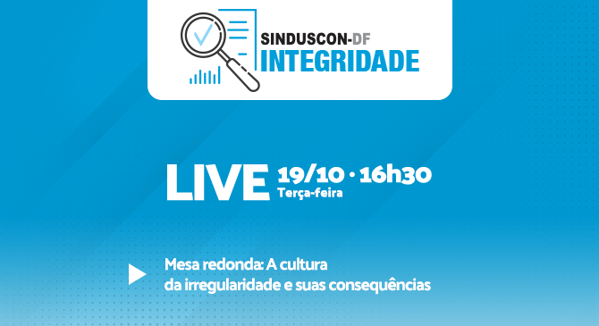 O evento será no dia 19 de outubro, às 16h30, no canal do YouTube do Sinduscon-DF. Clique aqui e acione o lembrete!