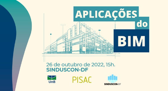 A Universidade de Brasília (UnB), em parceria com o Sindicato da Indústria da Construção Civil do Distrito Federal (Sinduscon-DF) e o Parque de Inovação e Sustentabilidade do Ambiente Construído (PISAC) realizará o evento “Aplicações do BIM”.